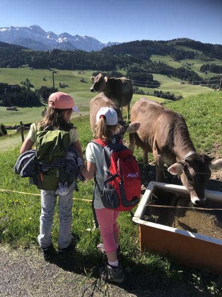 Kids und Kühe mit Blick auf den Säntis