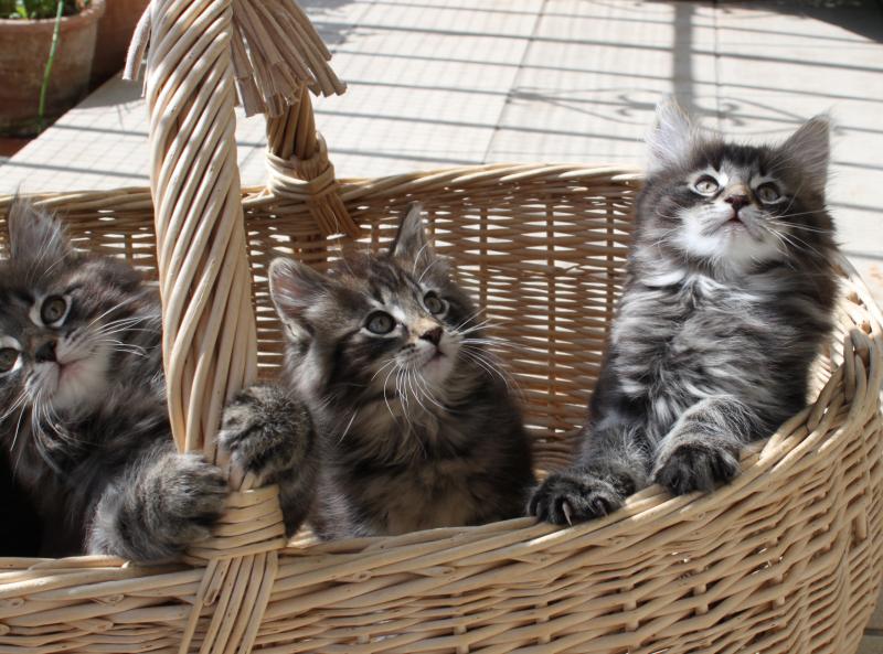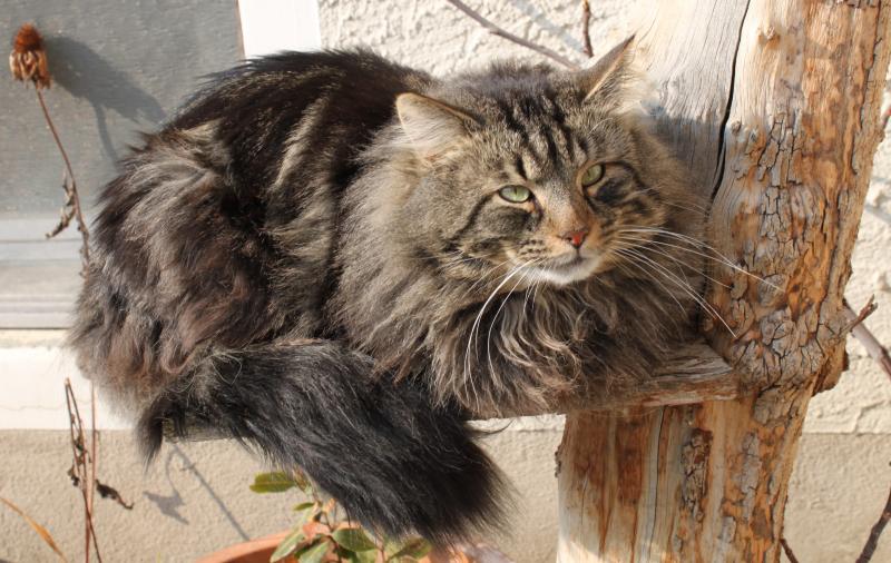 Hier noch ein wenig Geschichte über die Norwegische Waldkatze: Im frühen Mittelalter entdeckte man in den im Winter extrem kalten Gebieten der anatolischen und kaukasischen Hochebenen einen Katzentyp, der sich der strengen Witterung gut angepasst hatte. Diese schlanken, dennoch kräftigen und muskulösen Tiere trugen ein langes, dichtes Fell und gelten heute als die Urahnen der meisten Halblanghaarrassen. Vermutlich haben die Wikinger einige Exemplare dieser Tiere in ihre Heimat, den hohen Norden mitgebracht. Die Norwegischen Waldkatzen sind zutrauliche und liebe Katzen, jedoch manchmal mit vornehmer Zurückhaltung. Sie haben als ursprüngliche Rasse ihre Selbständigkeit behalten und wissen immer genau was sie wollen. Einmal ins Auge gefasste Ziele verfolgen sie mit Beharrlichkeit.
