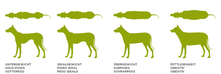 Le poids d'un chien ou d'un chat est directement lié à la santé de l'animal. Le surpoids n'est pas seulement un défaut visuel, mais il est associé à des risques importants pour la santé. Les lésions osseuses, les maladies cardiovasculaires et le diabète sucré ne sont que quelques-unes des conséquences graves du surpoids. L'insuffisance pondérale met également en danger la santé des chiens et des chats, car elle est dans la plupart des cas le résultat d'une malnutrition. Avoir un poids idéal signifie donc aussi être en bonne santé.