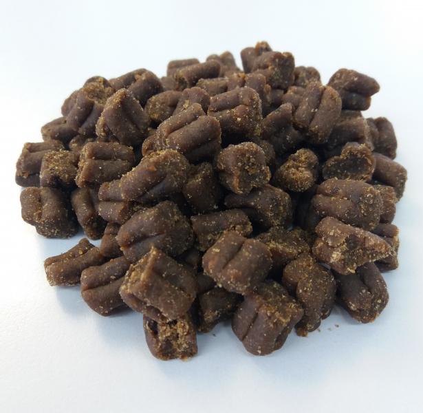 Con i cibi semi-umidi si può fino al 70% di carne tramite un nuovo processo di estrusione. Questo riduce il contenuto di cereali e aumenta automaticamente il contenuto di umidità. Il cibo diventa più sostanzioso e anche più prezioso, perché la carne contiene proteine animali, che il corpo animale può trasformare ottimamente.